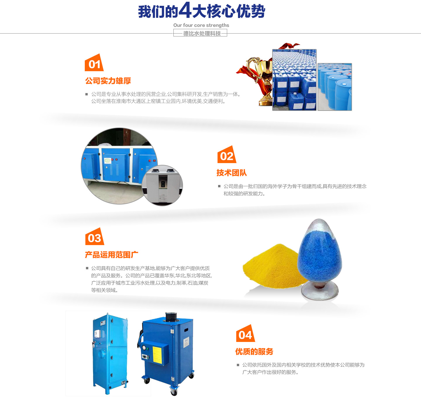 <p>淮南德比水處理科技有限公司是專業從事水處理的民營企業,公司集科研開發(fā),生產銷售為一體。公司坐落在淮南市大通區上窯鎮工業園,環(huán)境優(yōu)美。公司占地面積16畝,固定投資3000萬元,完全建成后年產可達2萬噸固體鐵系及鋁系工業水處理藥劑,成為華東地區大的固體水處理藥劑生產廠家。 本公司是由一批歸國的海外學子為骨干組建而成,具有先進的技術理念和較強的研發(fā)能力。公司依托國外及國內相關學校的技術優(yōu)勢使本公司能夠為廣大客戶作出很好的服務。本公司具有自己的研發(fā)生產基地,能夠為廣大客戶提供產品及服務。公司的主打產品已覆蓋江浙滬,東北三省以及山西,青海等地區,廣泛應用于城市工業污水處理,以...